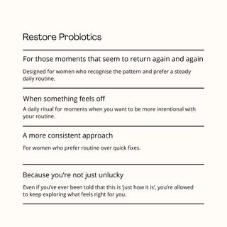 Mange kvinder vælger at fortsætte med Restore Probiotics som en del af deres langsigtede intimplejerutine, ligesom hudpleje eller ernæring.
