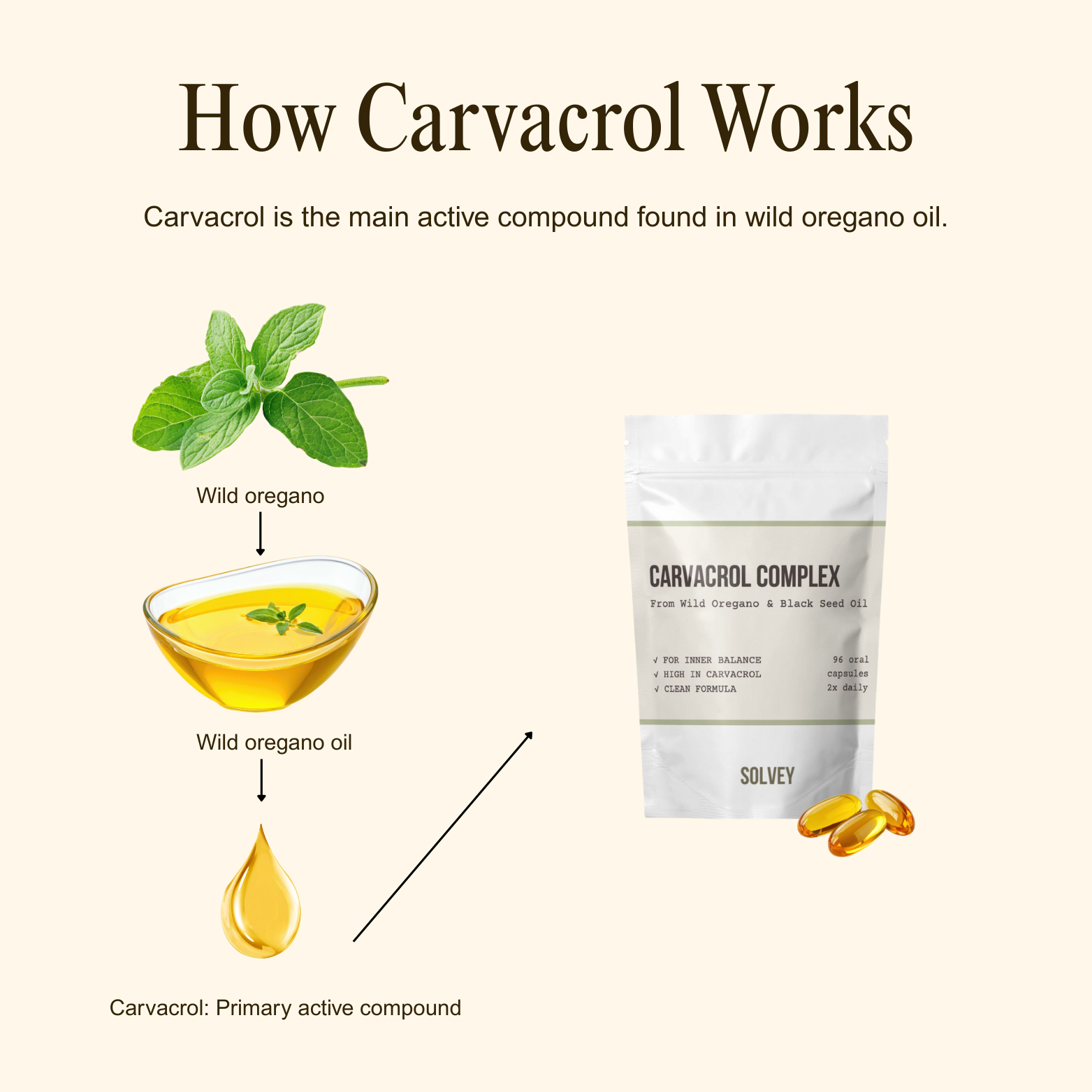 Carvacrol ist weithin für seine starke Wirkung gegen unerwünschte Bakterien und Hefen bekannt und wird häufig eingesetzt, wenn intensive Unterstützung erforderlich ist. In Bezug auf Wirksamkeit und Zweck bietet dieser Komplex eine tägliche Unterstützung, die mit boric acid vergleichbar ist, mit dem Vorteil einer oralen, konsistenten Anwendung. Schwarzkümmelöl (Nigella sativa) unterstützt zusätzlich die Immunfunktion und trägt zur Aufrechterhaltung der Stabilität und Widerstandsfähigkeit des inneren Gleichgewichts des Körpers bei.