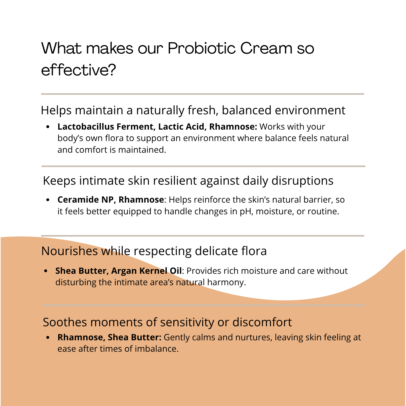 Die Intimpflegecreme schließlich stellt mit Probiotika, Milchsäure und antibakteriellem Kokosnuss-MCT-Öl die Feuchtigkeit und das Gleichgewicht wieder her, stärkt die Hautbarriere und unterstützt ein gesundes Mikrobiom der Vulva.