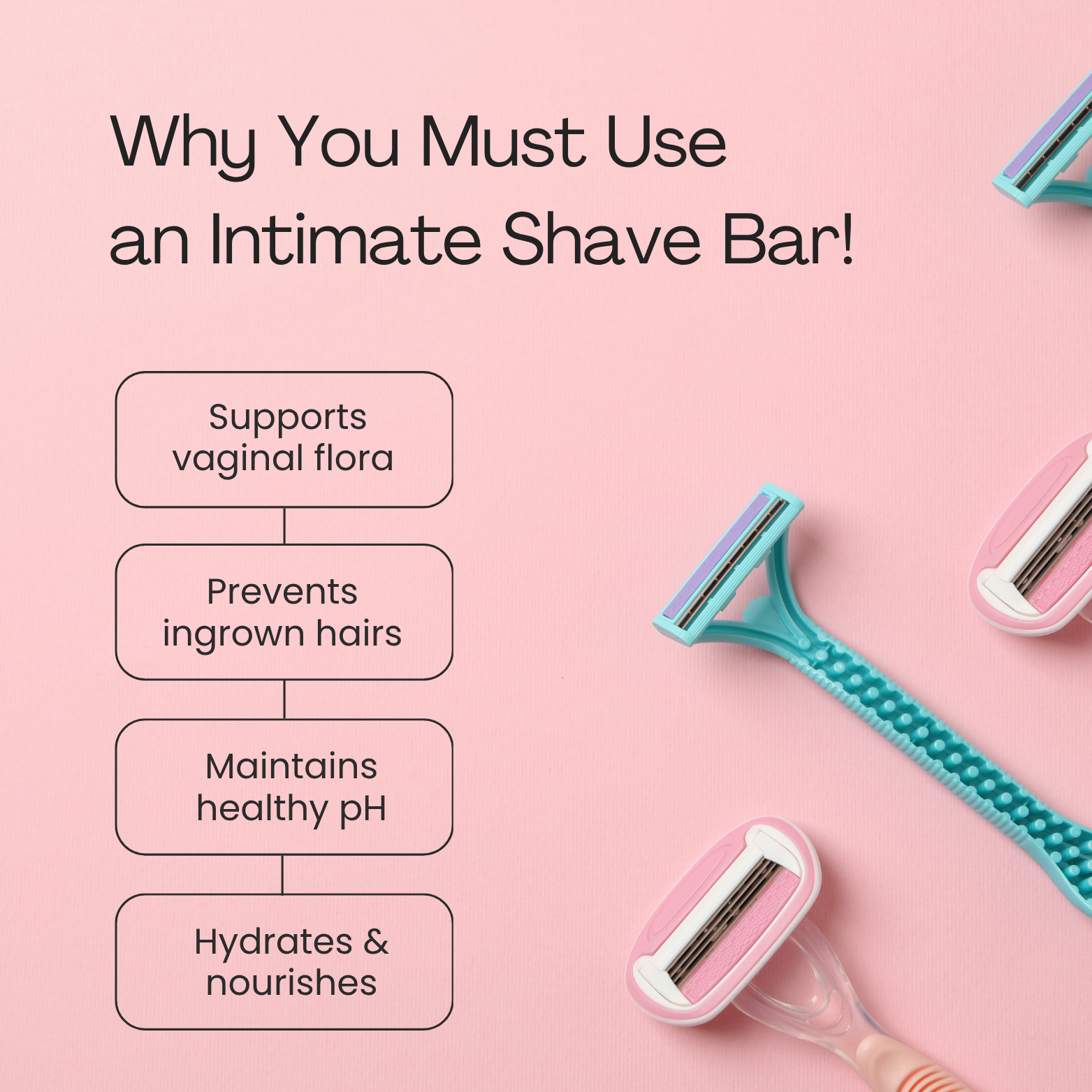 De Intimate Shave Bar reinigt en verzacht de huid zachtjes voor een gladde scheerbeurt en helpt irritatie en kleine sneetjes te voorkomen.